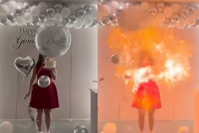 Theo đó, khi Giang cầm bóng bay cùng bánh kem có thắp nến thì bất ngờ quả bóng lớn nhất chạm vào lửa, phát nổ dữ dội. Ngọn lửa bùng lên, bao trùm tay và mặt cô, đồng thời cháy lan sang một số bóng bay trang trí trên trần nhà.