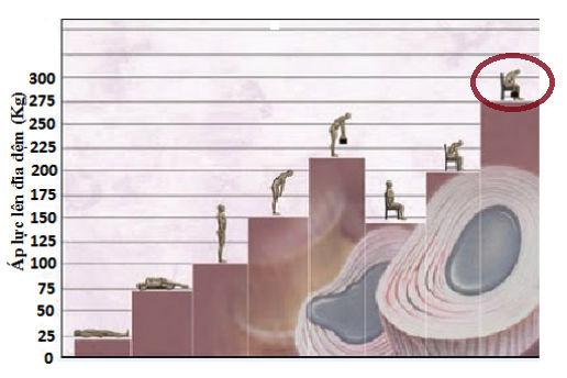 Khi đó áp lực lên đĩa đệm gấp 5 lần trọng lượng cơ thể, tương đương việc phải khiêng vật nặng 275 kg liên tục.
