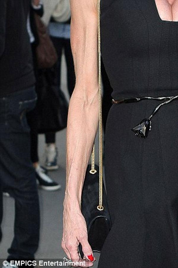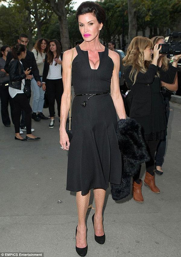 Hôm thứ 4, giới truyền thông bắt gặp cựu người mẫu 58 tuổi Janice Dickinson tới tham gia show diễn của nhà thiết kế Paul & Joe, nằm trong khuôn khổ của Tuần lễ thời trang Paris. Diện bộ đồ đen khoét ngực cùng giày cao gót đen, Janice Dickinson không gây chú ý với vẻ đẹp gợi cảm của bộ ngực đầy mà hầu hết người đối diện đều thấy gân guốc ở hai cánh tay, cổ trông rất ghê sợ.