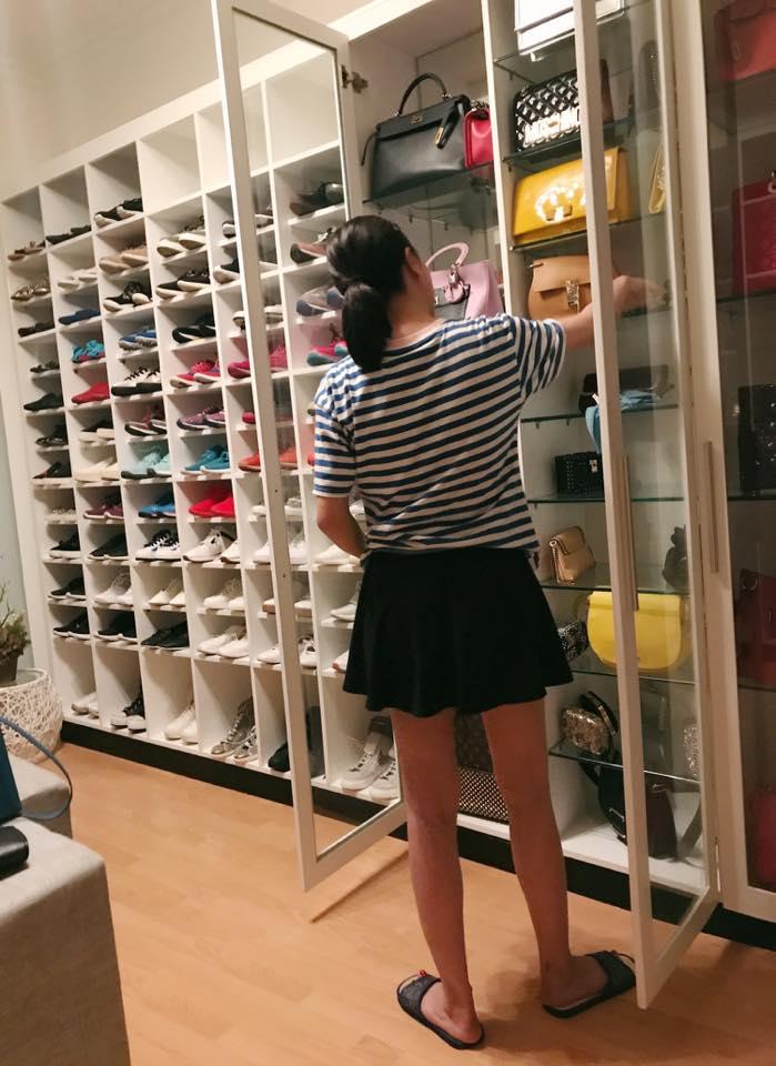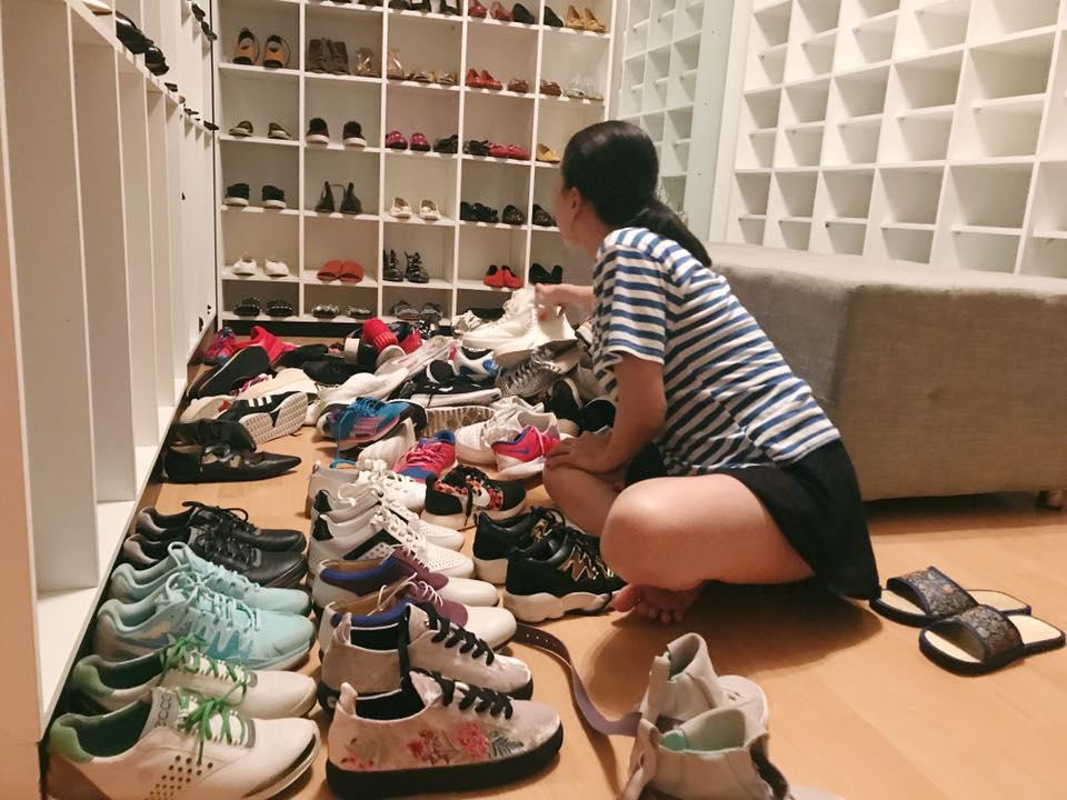 Trà Ngọc Hằng sắp xếp lại hàng trăm đôi giày của mình