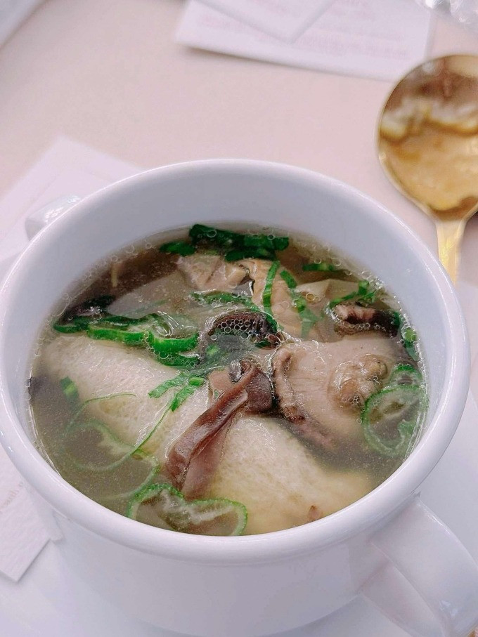 12 món ăn mà đôi uyên ương chiêu đãi gồm có: Gỏi tảo biển, nem thuần chay, súp bí đỏ nấu sữa hạnh nhân, bánh mì nướng - pate thuần chay, hải vị hấp miến, nấm hầu thủ xốt tiêu, súp lơ xanh, nấm lộc nhung, canh măng, mì spaghetti xốt nấm - thịt thực vật hiệu Bill Gates, xôi pate, kem que...
