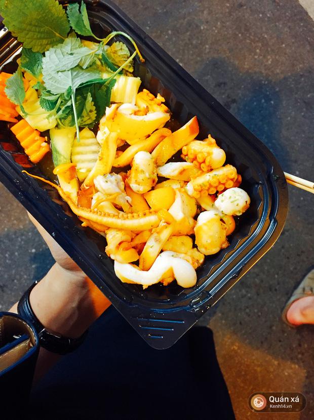 Bạch tuộc thì mềm mềm, thỉnh thoảng ăn được miếng to nhất thì sẽ hơi sần sật chứ chưa đạt được độ giòn dai như bạch tuộc thông thường.