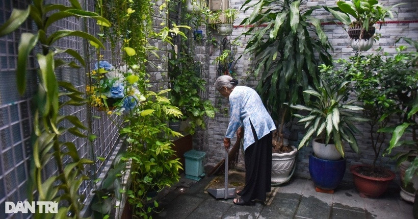 Bên ngoài phòng ngủ của NSƯT Phi Điểu có một sân vườn nhỏ. Mỗi buổi sáng, bà thường ra đây để hít thở không khí, tập thể dục để duy trì sức khỏe.