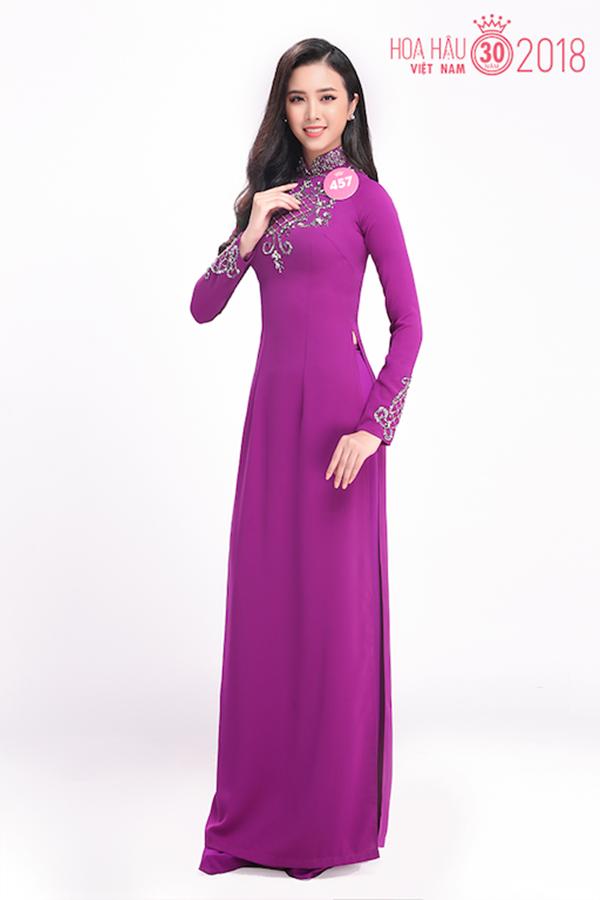 Thí sinh Bùi Trần Minh Thi dịu dàng trong tà áo dài tím