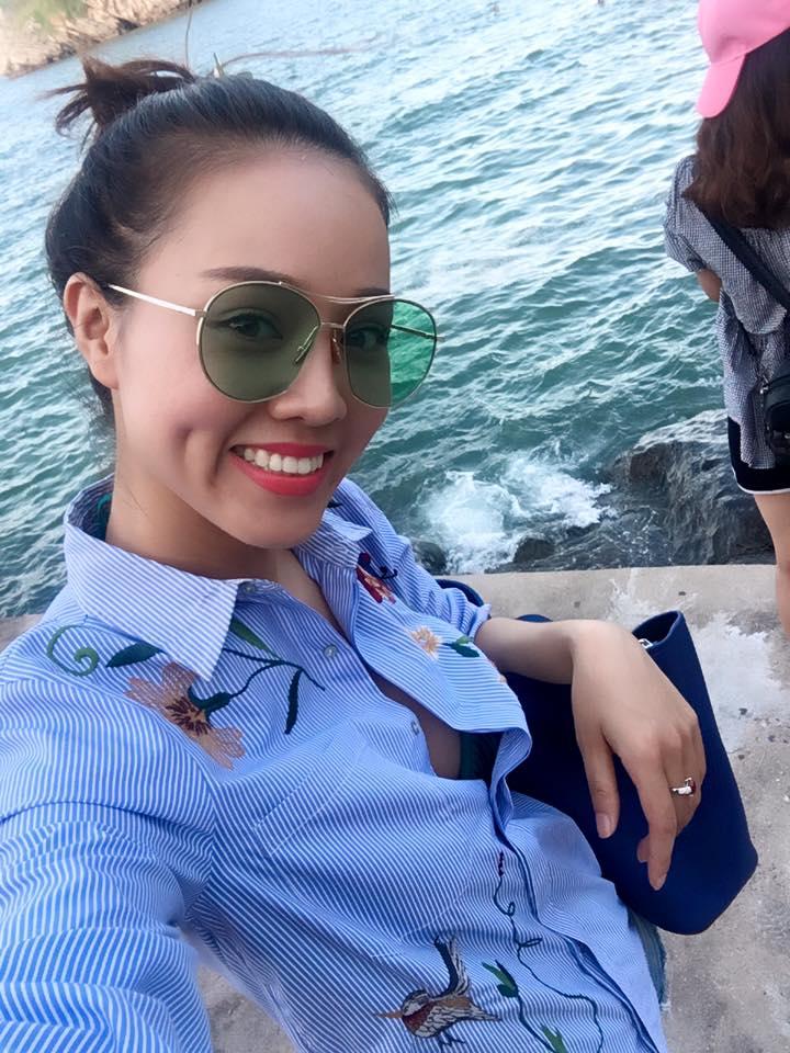 Cũng như bao cô gái trẻ hiện nay, tình mới của Công Lý rất hào hứng selfie ghi lại