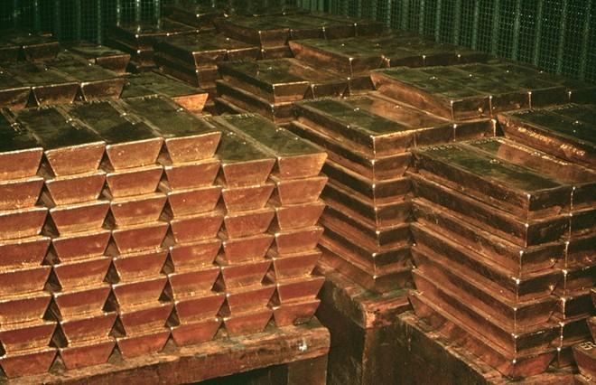 Ngoài ra, Mỹ còn sở hữu một kho chứa vàng nổi tiếng khác là Fort Knox, thuộc sở hữu của Cục Dự trữ Vàng Quốc gia Mỹ. Tính đến tháng 4 năm 2016 , Fort Knox giữ 4.582 tấn vàng. Khác với FED New York, hình ảnh về kho chứa vàng nằm trong căn cứ quân sự của Mỹ ở bang Kentucky rất ít. Giới chức nước này chỉ cho phép một nhóm người đặc biệt, gồm thượng nghị sĩ và phóng viên đến thăm kho vàng vào năm 1974, thời điểm mà bức ảnh này được chụp. Ảnh: AFP