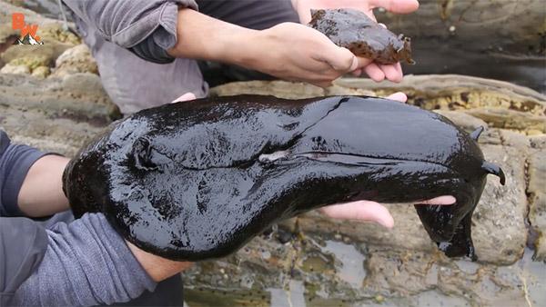 Con thỏ biển đen này có kích cỡ lớn hơn hẳn so với các sinh vật khác trong họ ốc sên biển.