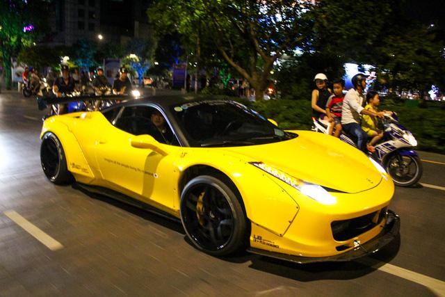 Khi chạy qua phố đi bộ Nguyễn Huệ, quận 1, chiếc Ferrari 458 Italia độ Liberty Walk thu hút hàng trăm sự chú ý của người đi đường cũng như các bạn trẻ dạo chơi tại đây.