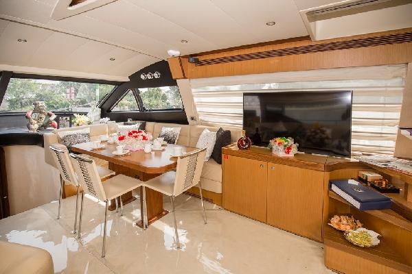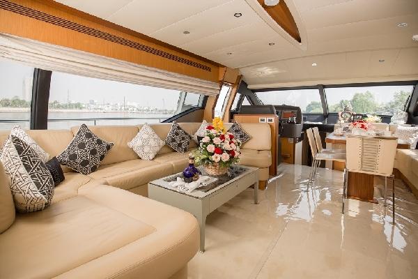 Du thuyền riêng của Lý Nhã Kỳ được thiết kế đầy đủ các tiện nghi bao gồm phòng giải trí, phòng ăn, phòng khách, khu quầy bar, khu tiệc ngoài trời, 3 phòng ngủ rộng rãi và một phòng sinh hoạt dành cho thuyền viên. Để sở hữu chiếc "phi cơ trên biển", giới thạo tin đồn đoán nữ chủ nhân đã phải rút hầu bao không dưới vài triệu USD. Hiện, mỹ nhân họ Lý là ngôi sao duy nhất tại Việt Nam sở hữu thương hiệu du thuyền này.