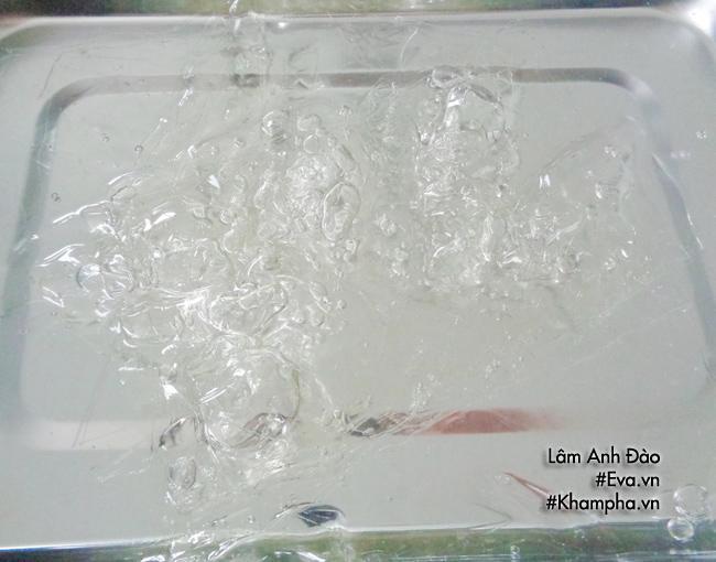 Bước 1: Lá gelatine ngâm vào nước đá lạnh 15 phút.