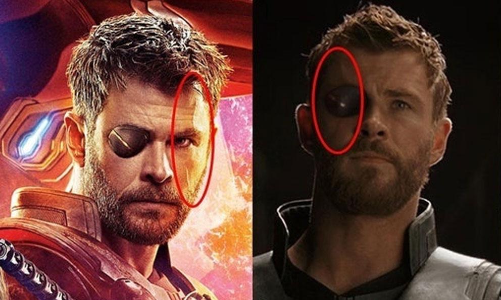 Vết sẹo trên khuôn mặt Thor bắt nguồn từ phần phim "Thor: Ragnarok", nằm cạnh con mắt bị thương. Nhưng trên poster của "Avengers: Infinity War", nó lại nằm bên trái.