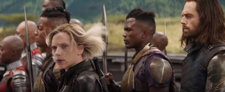 Hãy chú ý, tóc của nhân vật Black Widow đang bay trong gió.