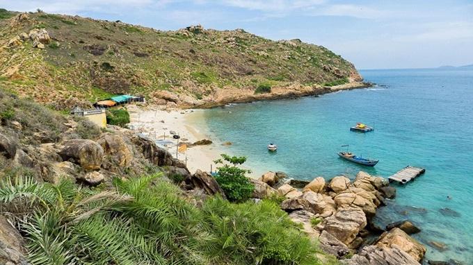 Không có nhà dân, khách sạn hay dịch vụ lưu trú trên đảo nên bạn phải thuê khách sạn ở Quy Nhơn, bắt tàu từ đất liền để đến Hòn Khô. Giá khoảng 300.000 đồng/tàu bình thường, 900.000 đồng/chiếc ca nô cao tốc có thể chở được khoảng 6 người. Tàu dừng ở bến, bạn gặp ngay con đường lót ván gỗ dẫn ra bãi tắm, cũng là chỗ vui chơi, sống ảo của giới trẻ.