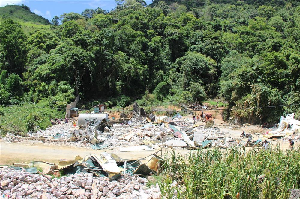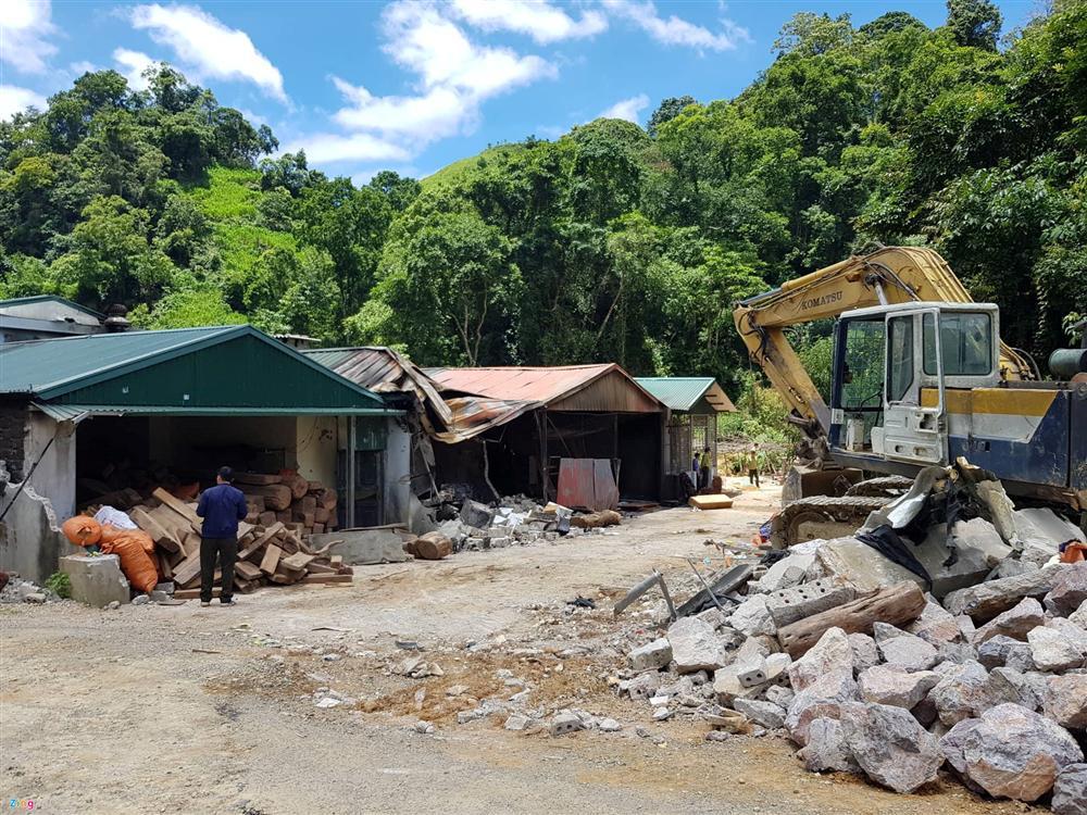 Căn hầm kiên cố đã bị phá bỏ phần mái. Theo cơ quan chức năng, căn hầm này sẽ bị san lấp, tất cả vật liệu xây dựng được chở đi nơi khác. Trao đổi với Zing.vn, ông Tếnh A Chìa, Chủ tịch UBND xã Lóng Luông cho biết sau khi phá dỡ nhà Tuân, khu đất này chưa có kế hoạch sử dụng vào mục đích gì.