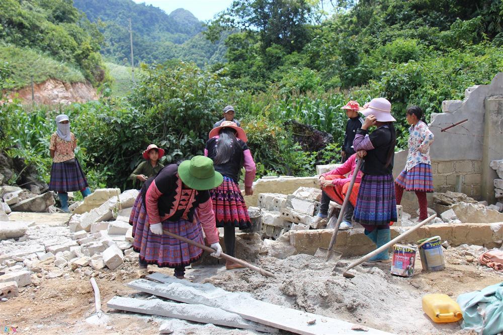 Lóng Luông là xã vùng cao của huyện Vân Hồ, cách biên giới 15-20 km. Xã có 11 bản với trên 5.200 nhân khẩu. Dân tộc Mông chiếm trên 87%. Sáng nay, nhiều bà con dân tộc sống gần nhà Tuân đến đây tận dụng số gạch trong đống đổ nát để xây lại bức tường mới. Họ nói rằng xây tường mới để ngăn cách đất nhà mình với nhà Tuân và chặn không cho gà, lợn chạy ra ngoài.