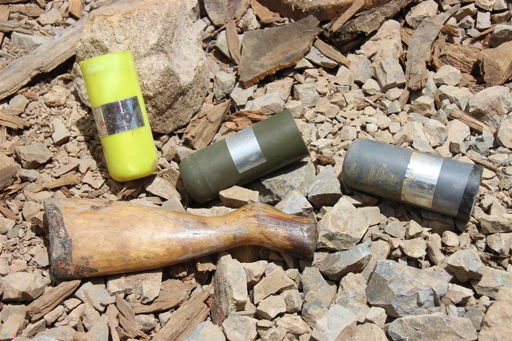 Trong đống đổ nát còn một vài vỏ quả nổ và một chiếc báng súng. Đây là những quả nổ còn sót lại sau trận đấu súng giữa hơn 300 cảnh sát và những tên tội phạm ma túy.