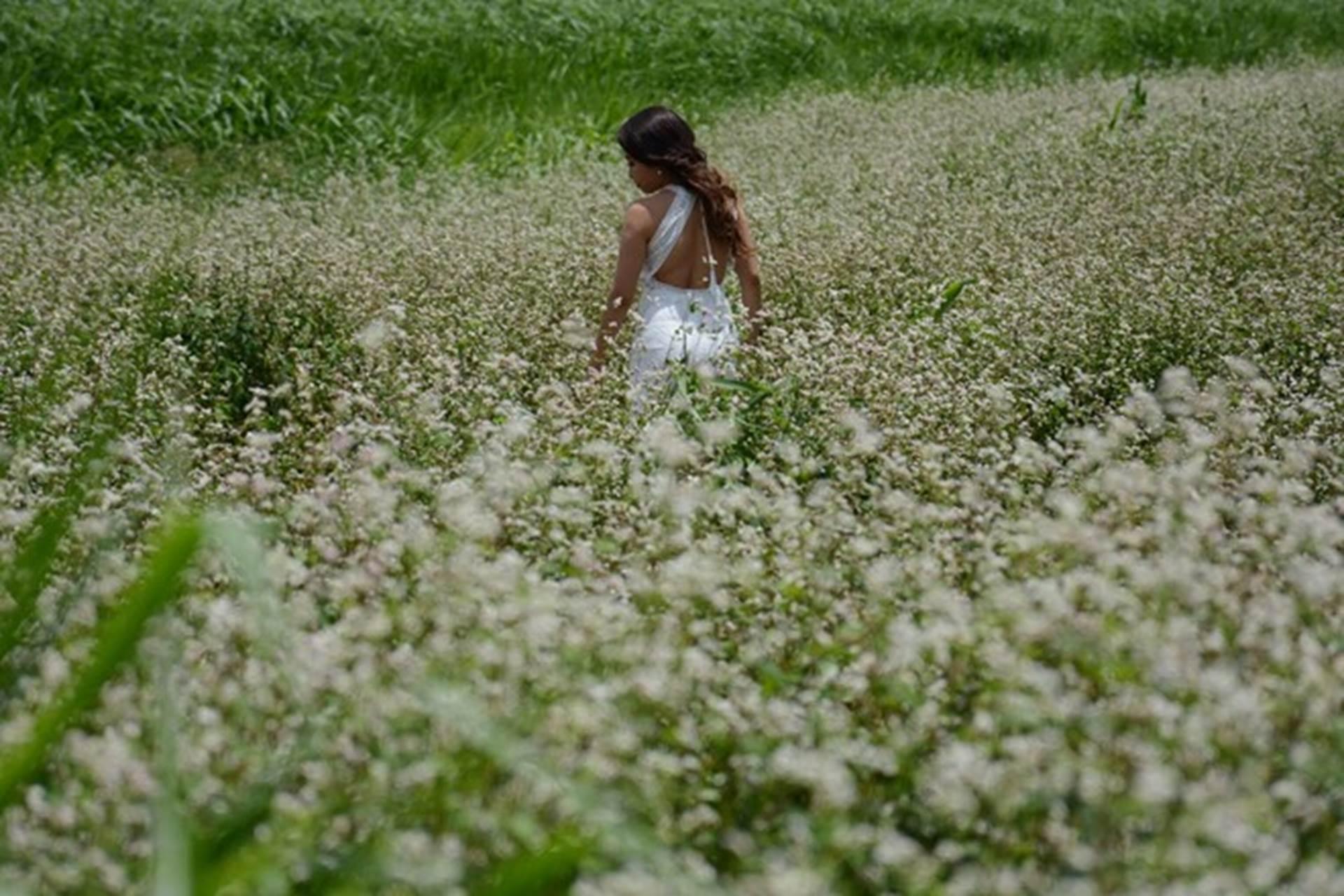 Cánh đồng hoa tam giác mạch đặc biệt này nằm ở thung lũng, cạnh đồng cỏ, bên