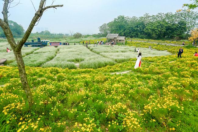Vườn hoa tam giác mạch rộng hơn 5.000 m2 này nằm ở phố Thạch Cầu, quận Long Biên.