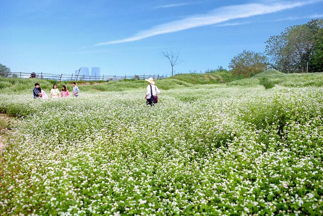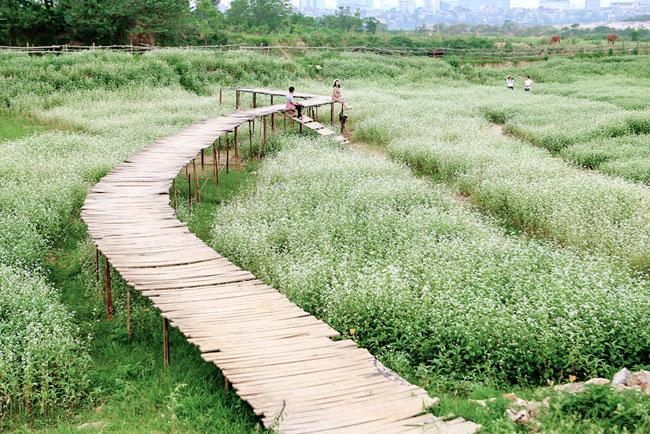 Nếu như trước đây phải đến tận Hà Giang để du lịch ngắm tam giác mạch vào tháng 10, tháng 11 hàng năm thì nay nhiều bạn trẻ đã có thể chụp ảnh check-in với loài hoa đặc biệt này giữa lòng thủ đô trong tiết trời cuối mùa xuân.