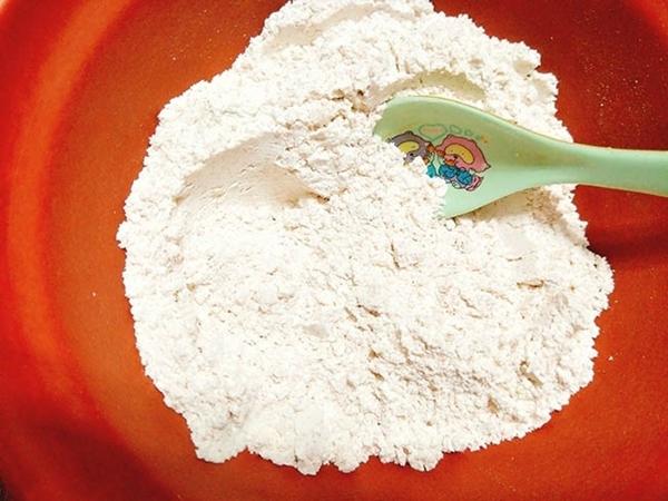- Bạn cho bột chiên giòn vào 1 chiếc tô, thêm bột tỏi, bột ớt, 1 thìa cà phê muối, đường và trộn đều nguyên liệu bột khô.