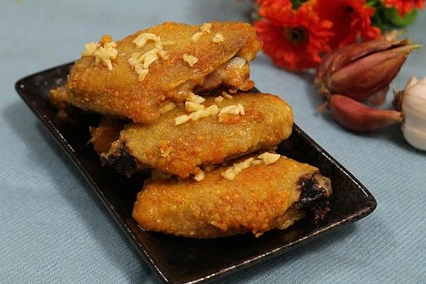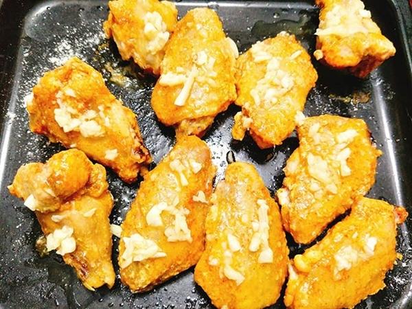 Cánh gà nướng bơ tỏi thơm lừng căn bếp, lớp vỏ ngoài chín vàng giòn nhẹ, beo béo và đậm đà, phần thịt bên trong mềm ngon hấp dẫn. Bạn có thể ăn kèm với dưa góp, xà lách, đồ muối chua mà không hề chán.