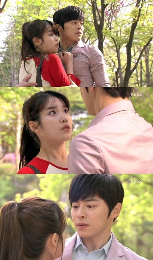Để tránh một chiếc xe đạp lao qua, anh chàng Joon Ho (Jo Jung Suk) và cô nàng Soon Shin (IU) vô tình ôm nhau trong tập 18 You're the Best Lee Soon Shin.