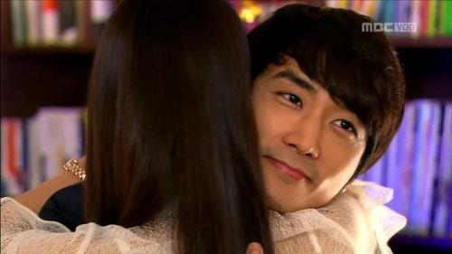Trong tập 11 bộ phim truyền hình When a Man Loves, Tae Sang (Song Seung Hun) và Mi Do (Shin Se Kyung) ôm nhau hạnh phúc trong hiệu sách.
