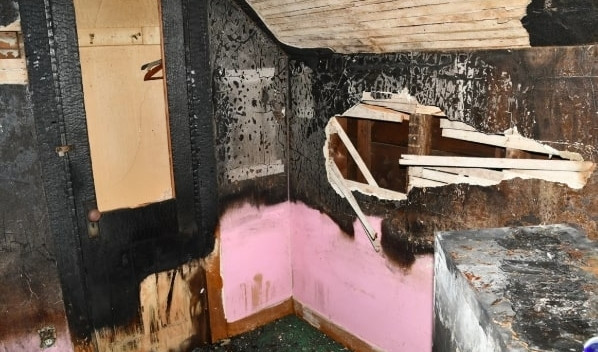 Một số phòng bị cháy đen, một số phòng khác đồ đạc để lộn xộn, tồi tàn, xuống cấp nghiêm trọng.