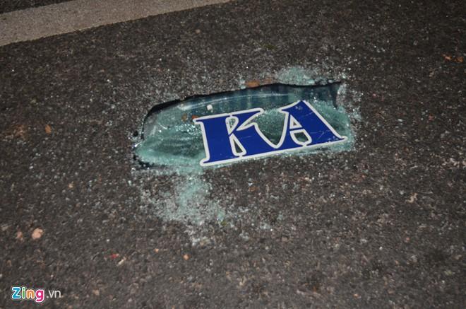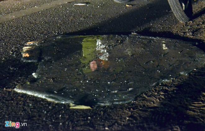 Kính chắn gió và cửa xe bị hư hỏng sau vụ nổ. Theo người dân khu vực, chiếc xe phát nổ rồi đi tiếp hơn 50 m