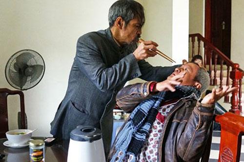 Diễn viên Chu Hùng và một cảnh "xử" nhân vật do NSƯT Quốc Trọng thủ vai.