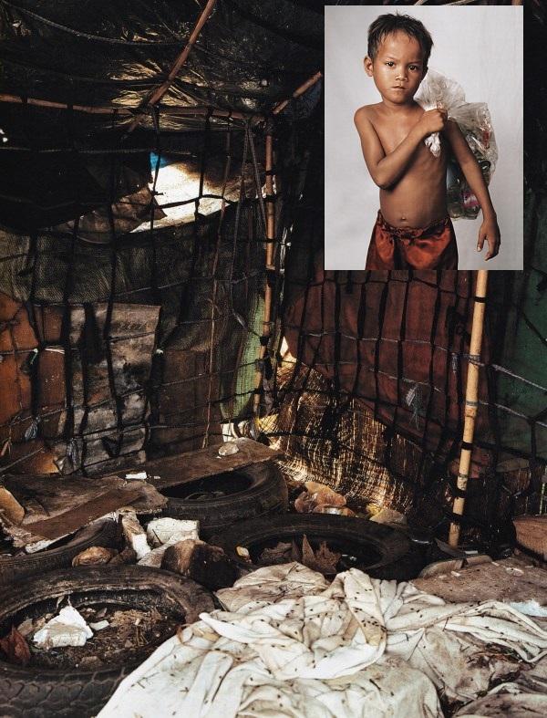 Cậu bé Roathy, 8 tuổi, sống cùng gia đình tại một khu rác thải lớn ở Phnom Penh, Campuchia. Môi trường sống tại đây vô cùng bẩn thỉu với nhiều ruồi nhặng và bùn thải. Hàng ngày, cả gia đình cậu phải đi nhặt rác để kiếm sống, chủ yếu là gom lượm ve chai và bán lại cho những công ty chuyên tái chế vỏ chai. Ngoài ra, người nhà cậu còn tái sử dụng bất cứ thứ gì có thể dùng được. Chiếc giường của Roathy được làm từ những chiếc lốp xe bị vứt bỏ.