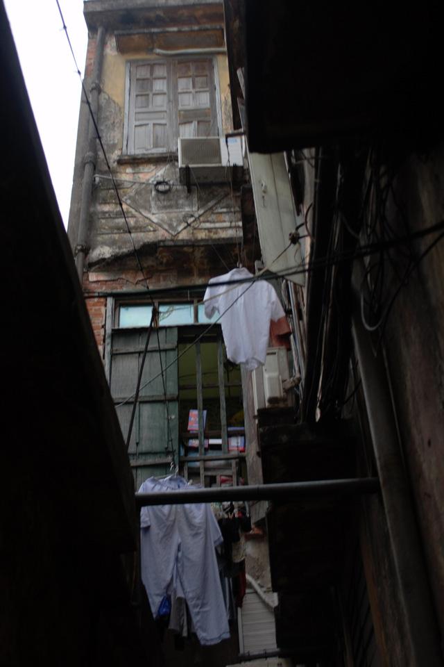 Lối đi chung chật hẹp, luôn phải thắp đèn dù giữa trưa.