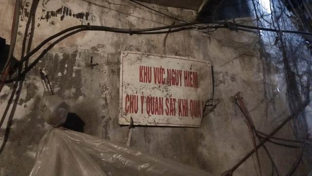 Tấm biển cảnh báo ở lối đi chung, tầng 1 ngôi nhà 47 Hàng Bạc