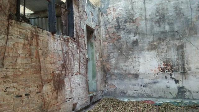 Phía trước cửa phòng là mái của tầng 1 gồm nhiều tấm tôn lụp xụp xếp chồng lên nhau. Nhìn lên trên, chiếc vì kèo ngang của căn nhà ngả màu đen cháy, một số điểm trên kèo thấy rõ vệt than. Bốn phía xung quanh phần mái ấy là những bức tường xám xịt, bám đầy rễ của cây si cổ thụ được trồng trên nóc tầng 3.