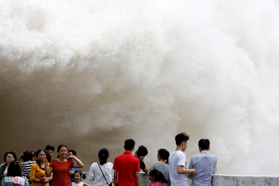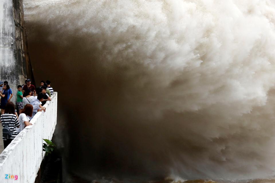 Trong hai ngày thủy điện Hòa Bình mở đáy xả lũ, nhiều người dân hiếu kỳ đến xem và quay phim chụp ảnh, bất chấp nguy hiểm.