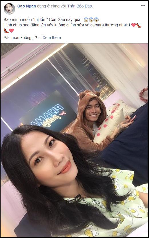 Nhận được đề nghị rất thẳng thắn từ đàn em, nam diễn viên có biệt tài giả gái tỏ ra... không mấy hứng thú. "Em vẫn chưa bỏ qua ý định đó à?", BB Trần bình luận ngay dưới bức ảnh của Cao Ngân.