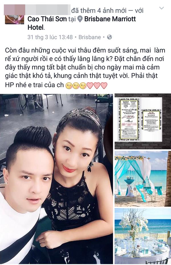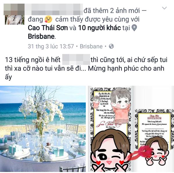 Quản lý của Cao Thái Sơn đăng tải thiệp mời cưới của nam ca sĩ, và cho biết nhanh chóng sang Úc để chúc mừng.
