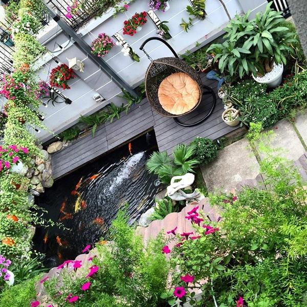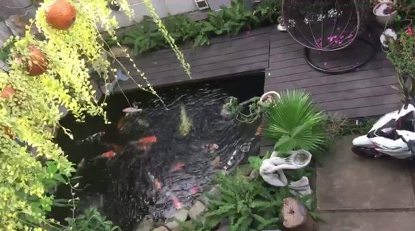 Nam ca sĩ cũng cho xây một hồ cá cảnh nhỏ xinh ngay trước cửa chính của căn nhà.