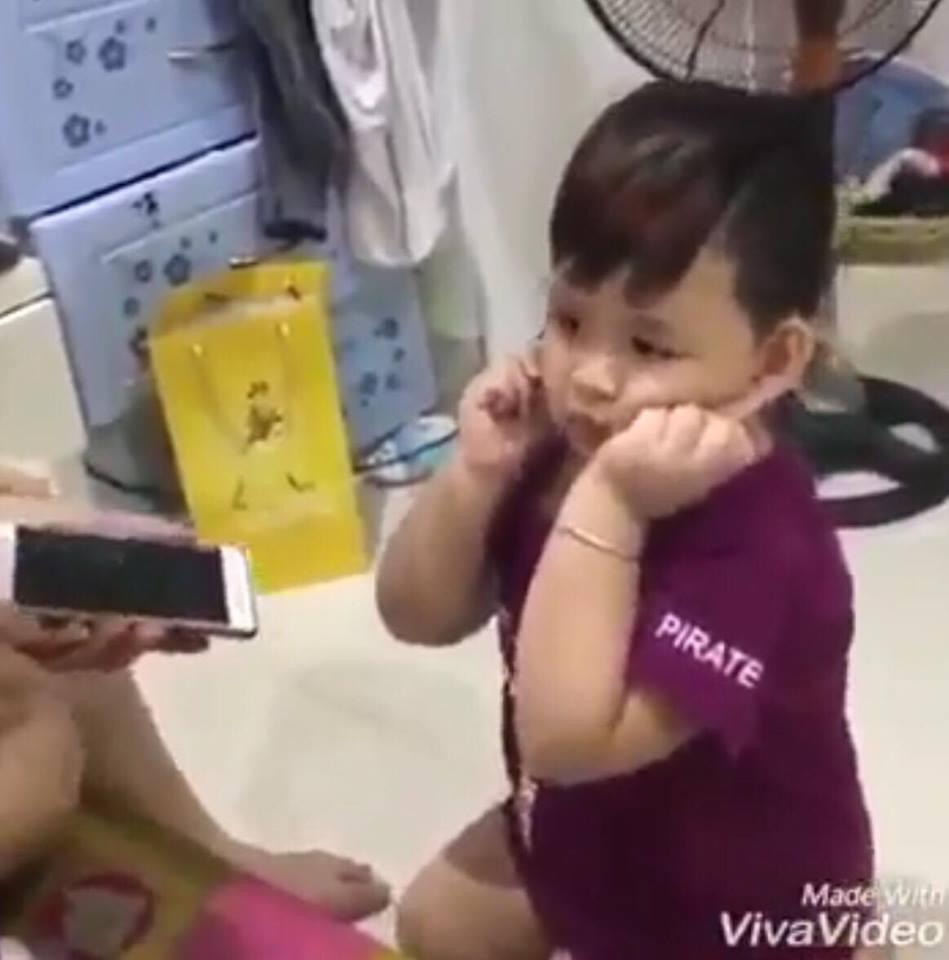 Đặc biệt, khi được mẹ hỏi chiếc điện thoại bao nhiêu tiền để phạt tội, cậu bé cũng hồn nhiên đáp lại "mấy triệu bạc" rồi làm bộ khoanh tay nũng nịu với mẹ. Chính việc này khiến người mẹ không nhịn được cười.
