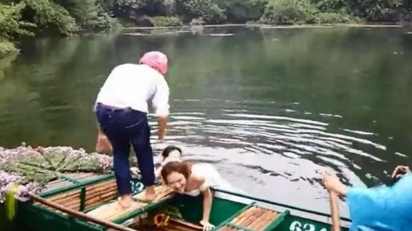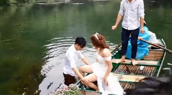 Các công đoạn diễn ra rất khó khăn, ngay từ bước đầu cặp đôi này đã bị ngã ngửa và chú rể bị ngụp mặt xuống nước ngay từ khi cả hai vừa bước xuống khỏi thuyền.