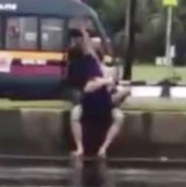 Theo đoạn clip được người đi đường ghi lại, cặp đôi này đã "diễn cảnh nóng" ngay trên một con phố tấp nập hàng trăm người qua lại. Người đàn ông đã ngồi trên một hàng rào bê tông ở giữa đường, trong khi người phụ nữ ngồi bên trên đùi, lấy tấm váy che phần nhạy cảm rồi thoải mái làm "chuyện ấy" như đang ở nhà, bất chấp đó là nơi công cộng.