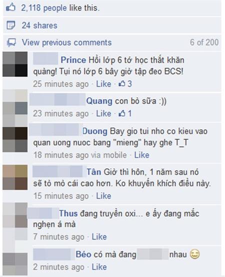 "Sao mà tuổi trẻ bây giờ tài cao thế nhỉ. Nhìn hình chắc tụi này sinh năm 2000 hoặc ít hơn. Ngày xưa độ tuổi này mình còn hồn nhiên lắm. Bây giờ tụi này sao mà bạo dạn thế nhỉ. Đây cũng là bài học cảnh giác cho rất nhiều phụ huynh về việc giáo dục con cái.", nickname Trang Mita bức xúc.Một bạn có nickname Roby cho rằng, những chuyện như trên khá phổ biến trong giới trẻ hiện nay.