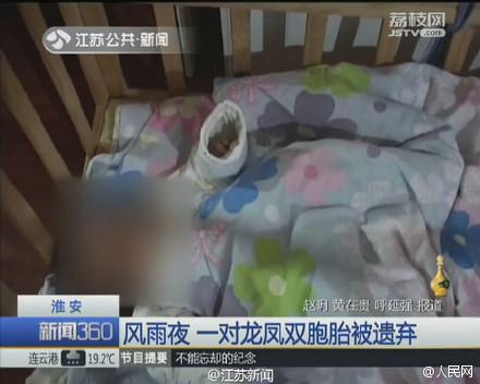 Đêm ngày 28/9, người dân tại huyện Liên Thủy, Hoài An, Giang Tô, Trung Quốc sửng sốt khi phát hiện một cặp sinh đôi khoảng 6 tháng tuổi bị bỏ rơi. Hai bé bị bỏ trong một chiếc thùng, kèm quần áo và đồ dùng, tại một góc hẻm nhỏ.