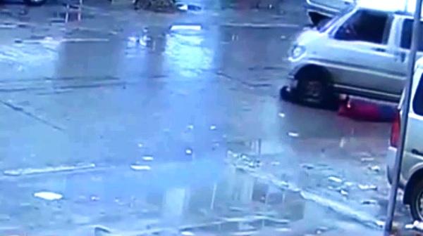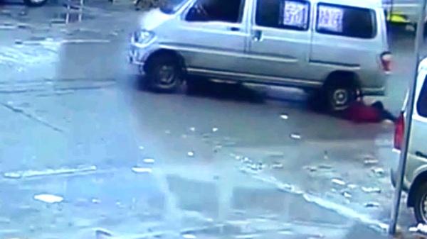 Trong đoạn video được ghi lại bởi máy quay an ninh, có thể thấy hai bé gái đang đi bộ dọc theo một con đường không có vỉa hè thì bất ngờ bị húc trúng bởi một chiếc xe hơi hiệu Minivan đang phóng ra từ con ngõ gần đó.