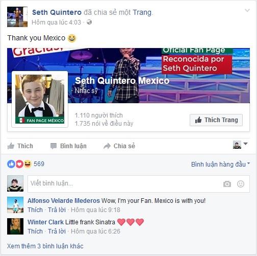 Cậu bé Seth đã có fan page tại Brazil và Mexico.
