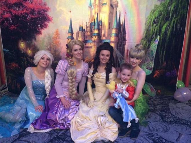 Riley-Prince Hirons hạnh phúc khi được mặc váy công chúa, đội vương miện và đeo hoa tai trong ngày sinh nhật 4 tuổi.