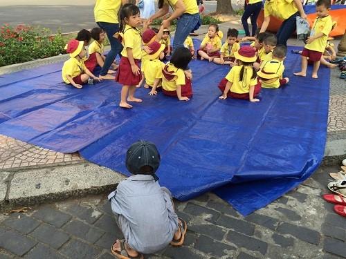 Giữa cái nắng gắt của Sài Gòn, nhìn cảnh bé tự nguyện và vui vẻ làm một việc mà thông thường, chắc chắn chẳng ai dành lời khen ngợi, bỗng thấy vui lạ.