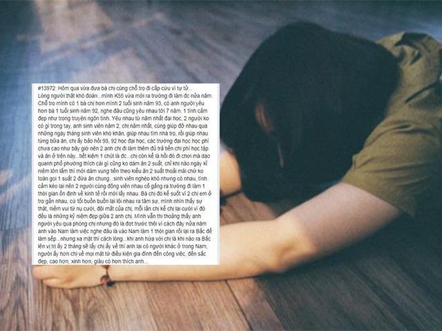 Vừa qua, một tâm sự giấu tên trên một trang facebook nổi tiếng kể về câu chuyện của một cô gái vừa tự tử vì bị người yêu phản bội đã thu hút sự quan tâm của cộng đồng mạng. Người kể chuyện chính là người em cùng chỗ trọ của cô gái.