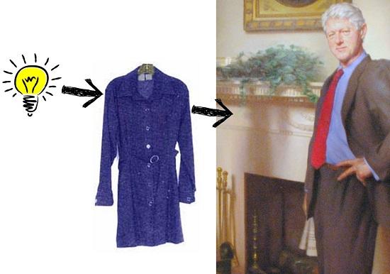 Chiếc váy đặc biệt này cũng trở thành nguồn cảm hứng cho họa sĩ Shanks khi ông vẽ bức chân dung Tổng thống Bill Clinton năm 2005. Ông cho biết đã thêm vào chi tiết chiếc váy trong bức tranh vì câu chuyện về mối quan hệ của Tổng thống và Lewinsky luôn ám ảnh ông: "Tôi muốn kết hợp câu chuyện của Lewinsky một cách tinh tế vào bức tranh". Vị họa sĩ tài tình này đã thêm vào một chiếc bóng ngay phía bên vai phải của ngài Tổng thống. Và theo ông, gia đình Tổng thống Bill Clinton không thích điều này sau khi nghe nói bóng gió về ẩn dụ trong tranh dù cho trước đó Tổng thống đã khen ngợi nó. Ông Shanks còn nhấn mạnh: “Tôi nghĩ công chúng nên được xem bức tranh đó.”