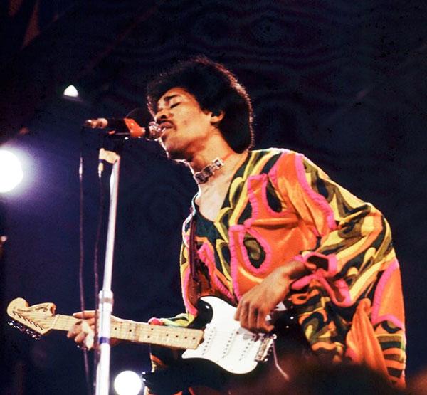 Jimi Hendrix, nam ca sĩ Purple Haze cũng từng hoàn chỉnh bộ trang phục đậm chất nghệ sĩ với chiếc áo dài tay màu cam và phụ kiện đeo cổ đồng bộ vào năm 1970.